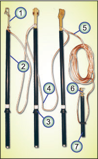 Заземления переносные линейные ЗПЛ-Техношанс-15-01 (рис. 1) снабжены электродинамическими зажимами 1 для предотвращения сбрасывания при протекании ударных токов короткого замыкания.